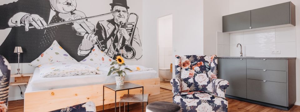 Tauche ein in die kreative Atmosphäre unseres Künstlerzimmers, inspiriert von dem renommierten Künstler Robert Nippoldt. Mit einer großzügigen Größe von 28 m² bietet dieses besondere Zimmer ausreichend Raum für Entfaltung und Erholung – der ideale Rückzugsort für Künstler, Kreative und all jene, die nach Inspiration und Ruhe suchen.